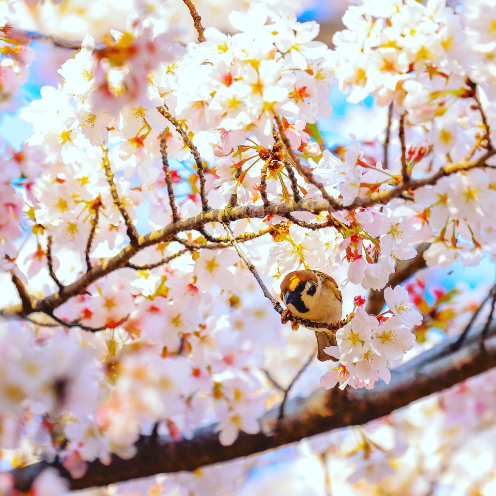 スズメも花見🐥